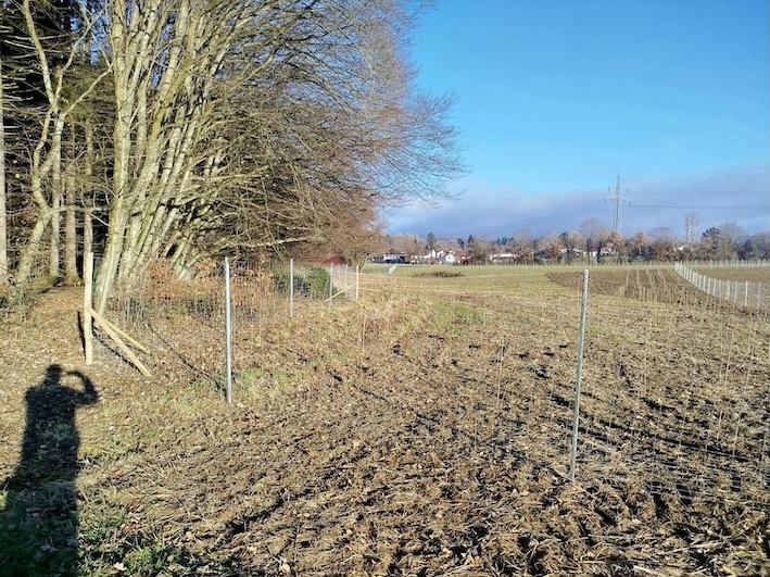 Zusätzlich wurden elf Greifvogelansitze aufgestellt. Wozu? Greifvögel jagen Mäuse und andere Kleintiere, die sonst die jungen Bäume und Sträucher beschädigen könnten. Durch diese Maßnahme soll die Entwicklung der Aufforstungsflächen möglichst ungestört verlaufen und ein stabiler Mischwald entstehen. Die Pflanzungen sind so angelegt, dass sich zwischen den gesetzten Bäumen und Sträuchern weitere Arten ansiedeln können und sich die Flächen in den kommenden Jahren zu einem vielfältigen und ökologisch wertvollen Mischwald entwickeln.