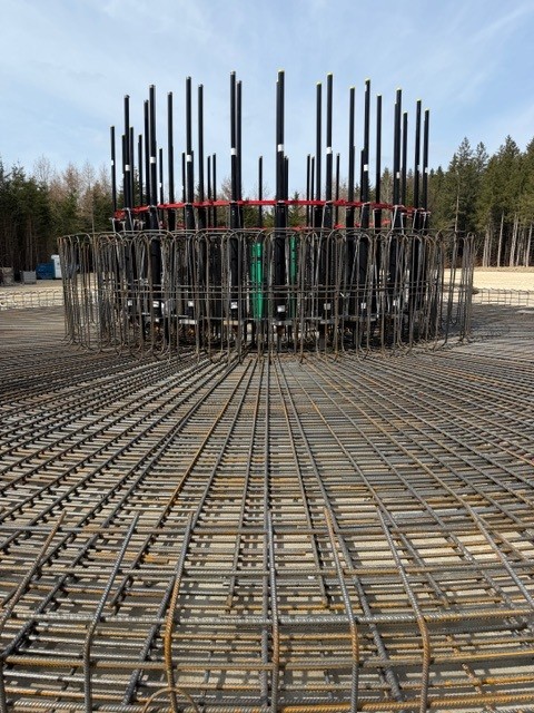 • An der Windkraftanlage WEA 02 ist die Sauberkeitsschicht erstellt und ebenfalls der Ring für Spannseile für den Turm aufgestellt.