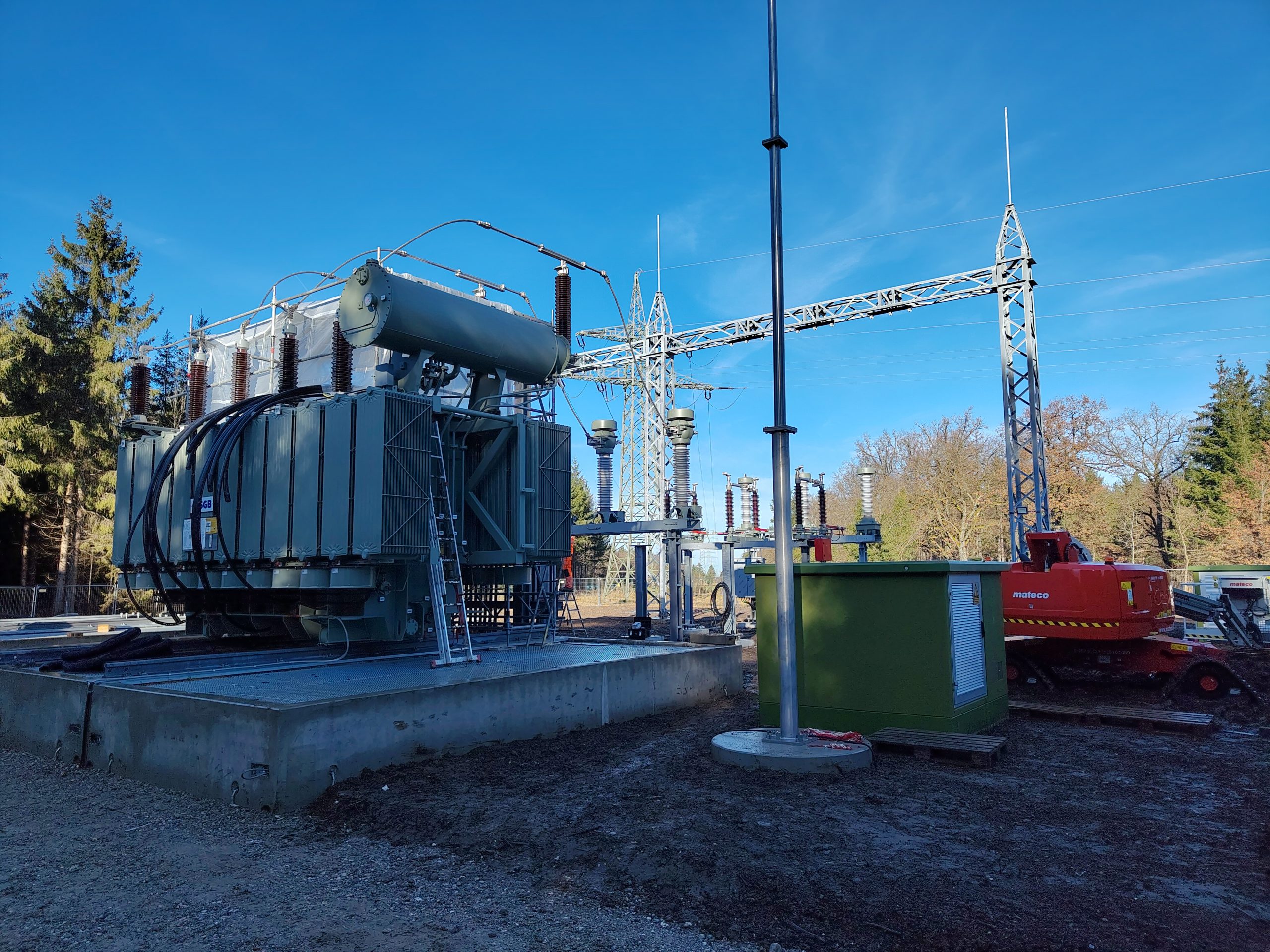 Mit der Installation dieser Hauptbauteile sind die baulichen Arbeiten beinahe abgeschlossen. Parallel dazu starten die elektrotechnischen Arbeiten und die erforderlichen Tests, um das Umspannwerk in Kürze in Betrieb nehmen zu können. Gleichzeitig finden Arbeiten an den Hilfsbauteilen wie Schutztechnik und Blitzableitung statt.